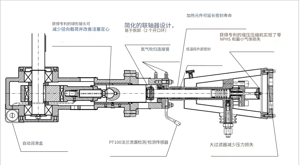 • 球面连接结构,减少径向载荷并提高活塞居中精度